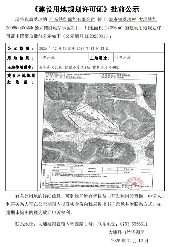大项目!大埔县《建设用地规划许可证》批前公示(编号:DB20..